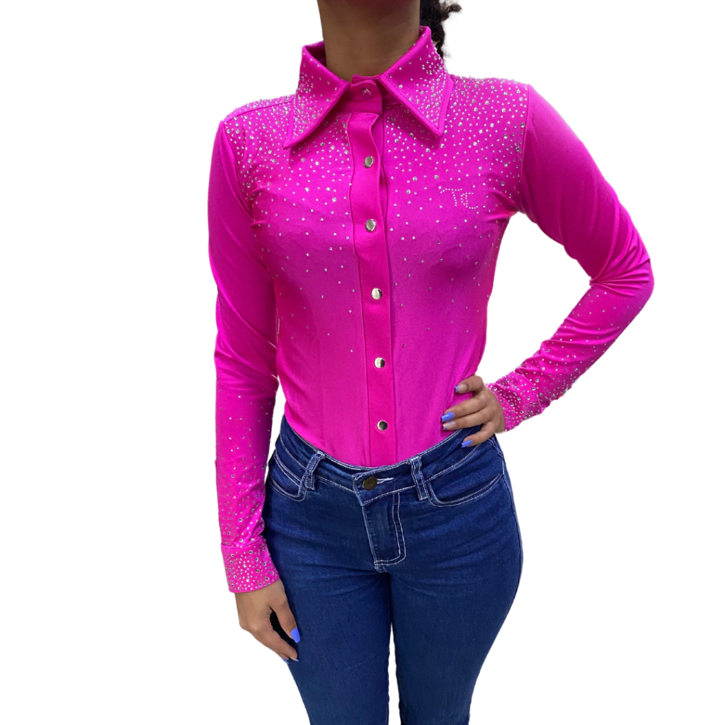 Body Manga Longa Brilho Luxo Top Country Rosa Pink