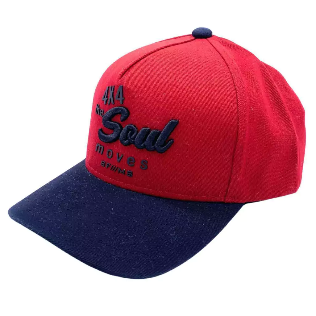 Este boné é confeccionado em 100% algodão, garantindo conforto e qualidade excepcionais. Com a frente na cor vermelha vibrante e a aba em azul marinho, ele é perfeito para quem busca estilo e praticidade.