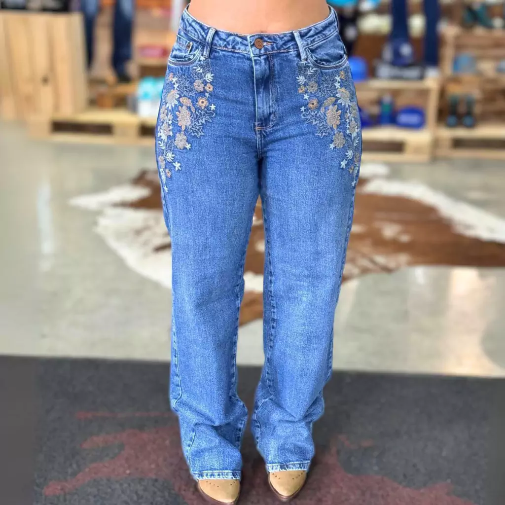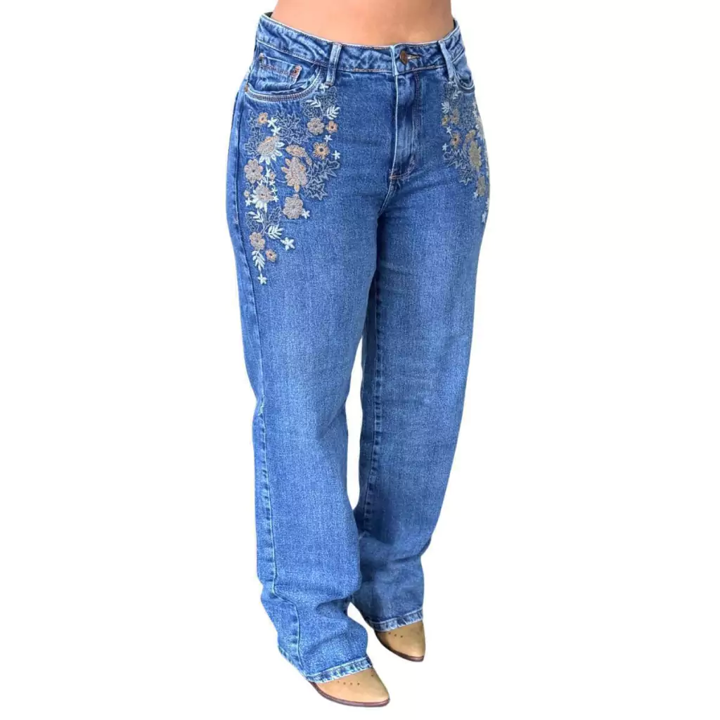 Calça Jeans Feminina Wide Leg Consciência Flor Ref.24366