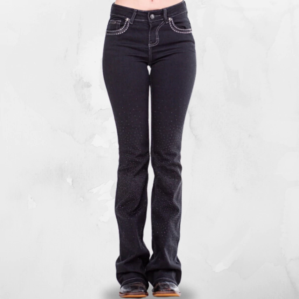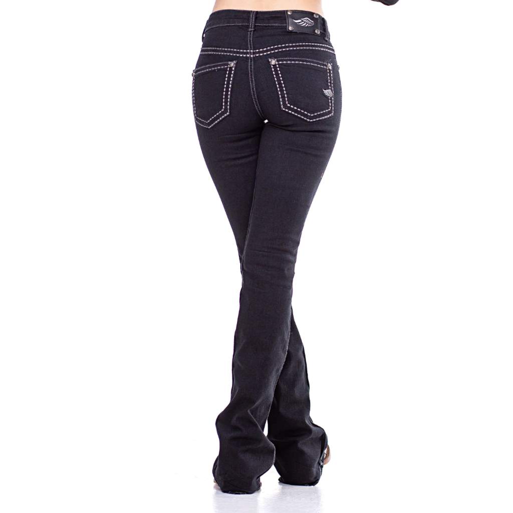 Com um design único, apresenta bordados rústicos na pala, bolso traseiro e boca do bolso. A frente é adornada com pedrarias pretas, garantindo um toque sofisticado.