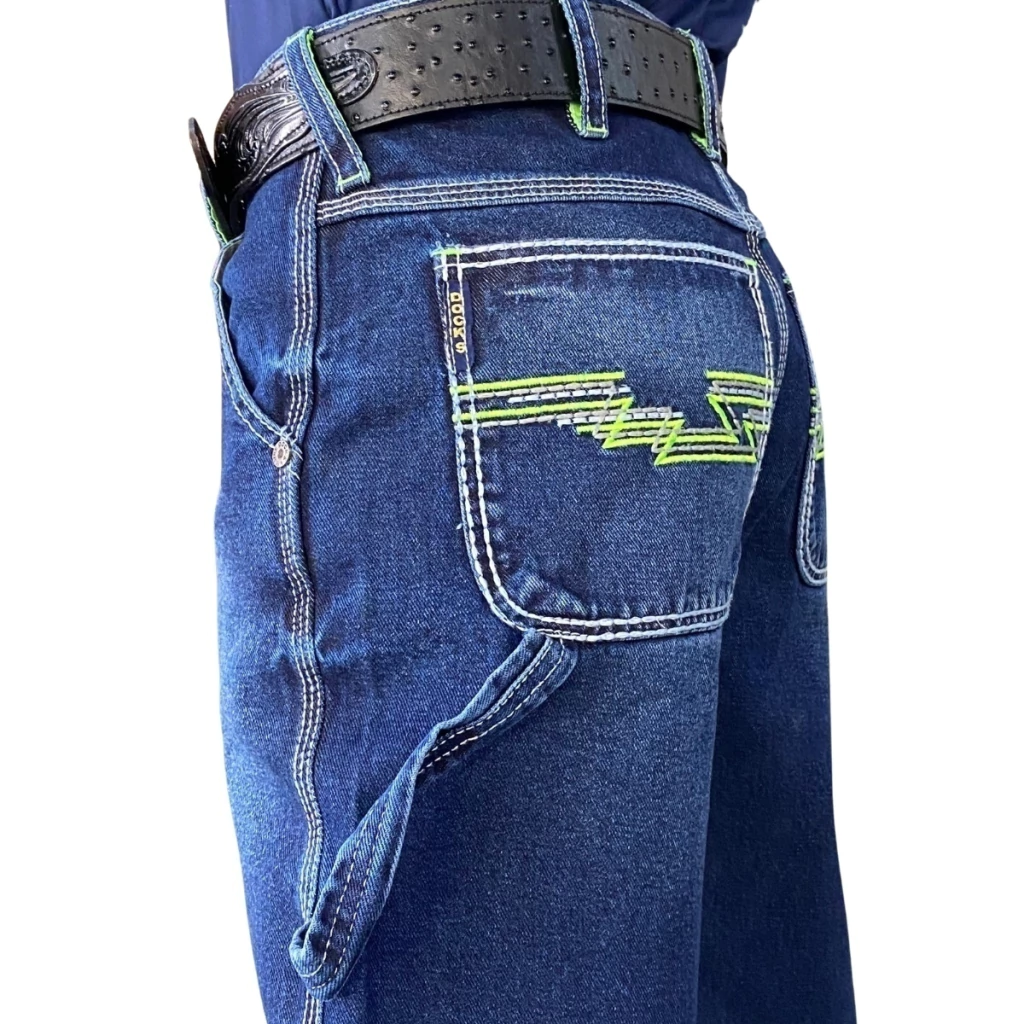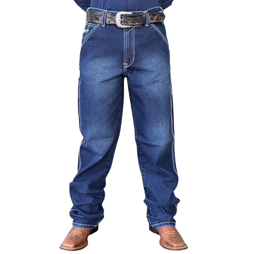 O destaque fica por conta do bordado verde, que adiciona um toque único e sofisticado ao jeans azul escuro, tornando a peça versátil para diversas ocasiões. Invista em qualidade e design com essa calça que combina funcionalidade e visual contemporâneo.