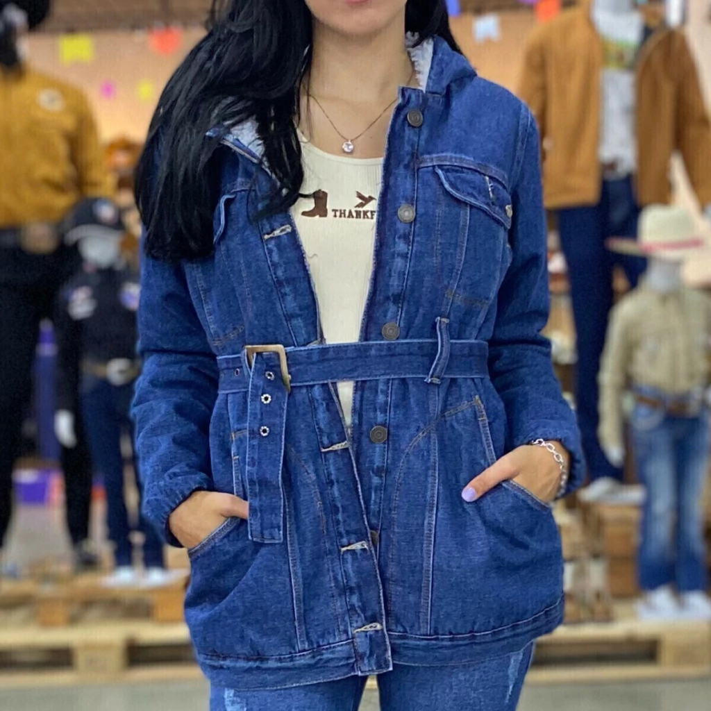 A Jaqueta Parka Consciência Jeans forrada é a adição perfeita para o seu guarda-roupa! Confeccionada em 100% algodão, ela apresenta um lindo detalhe de cinto jeans, unindo estilo e conforto. O forro de sherpa proporciona um toque aconchegante, ideal para os dias mais frios.