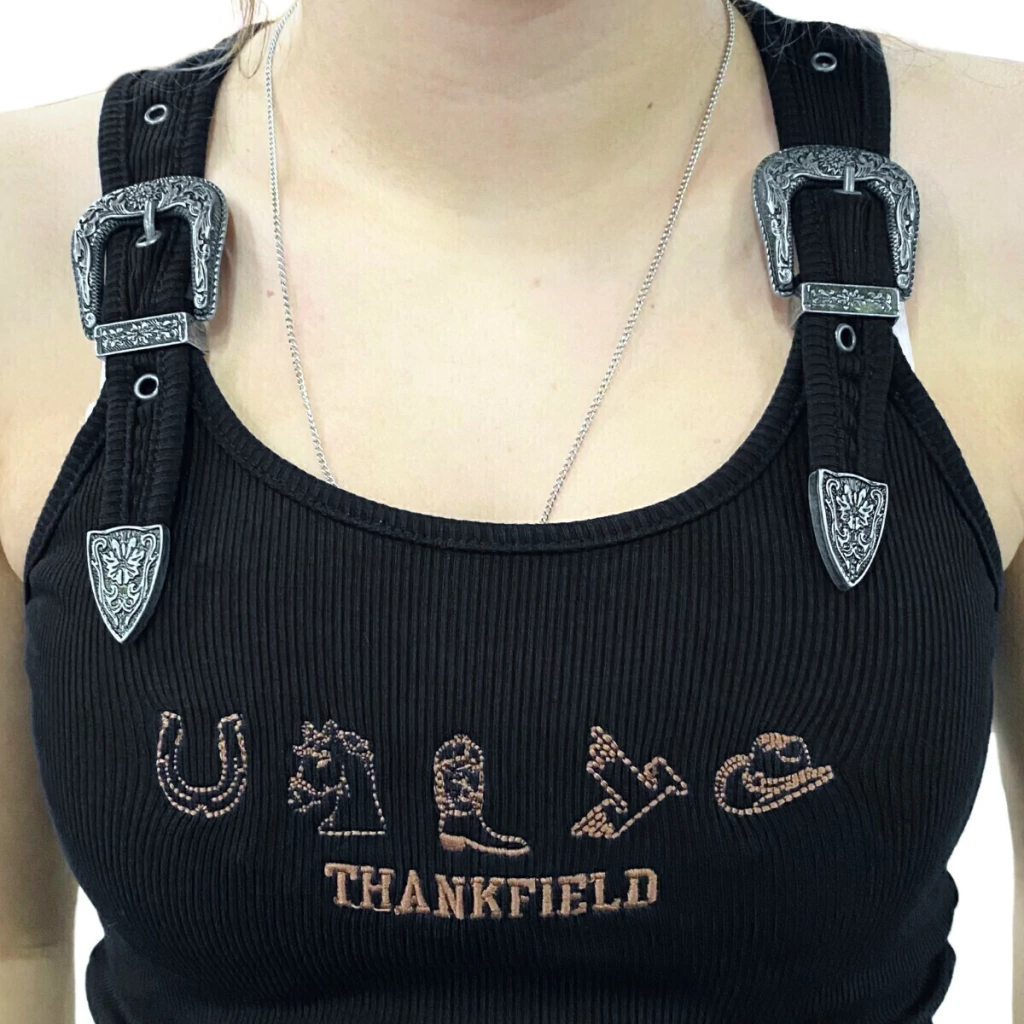 Descubra o charme e a elegância do Regata Feminina Thankfield. Confeccionado em 91,5% viscose e 8,5% elastano, ele proporciona um caimento perfeito e conforto inigualável.